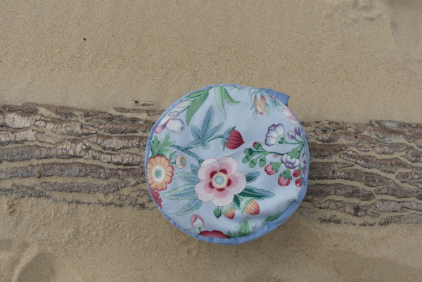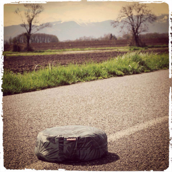 Isakutu réalise ses coussins à partir de matériaux de récupération : » Tout est récup, des cosses de sarrasin qui l’habitent à la fermeture éclair. Les tissus que les personnes m’apportent à l’atelier ont tous une histoire et sont tous dédiés à la poubelle : couverture de déménageur, déchets de la marque Tribord spécialisée dans les sports d’eau, draps anciens, couvertures militaires, coupons africains, bâches événementielles, soie… Je leur propose une dernière vie en devenant un coussin pour méditer. »