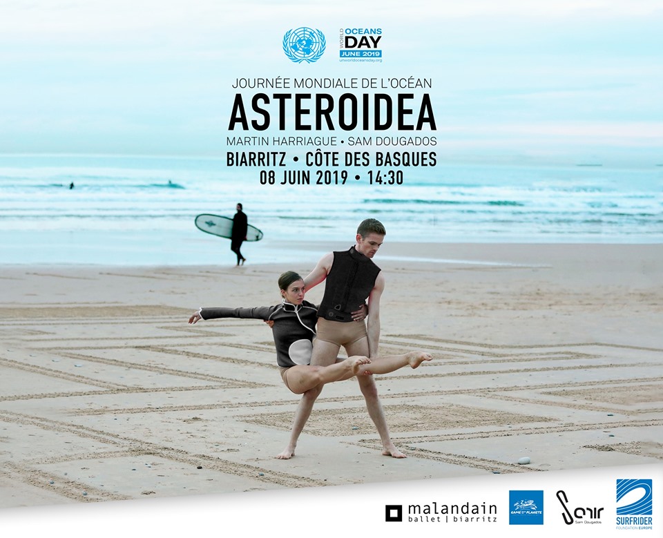 Dans un premier temps, l’artiste Sam Dougados va réaliser un dessin sur le sable, puis les danseurs et les surfeurs s’inscriront dessus et entameront un mouvement. La chorégraphie, appelée “Asteroida”, reprend un spectacle du Ballet Malandain, Sirènes, réalisé par Martin Harriague et dont le thème est l’océan et la problématique de sa pollution. Pour cela les danseurs, danseuses auront leur queue de sirène.
