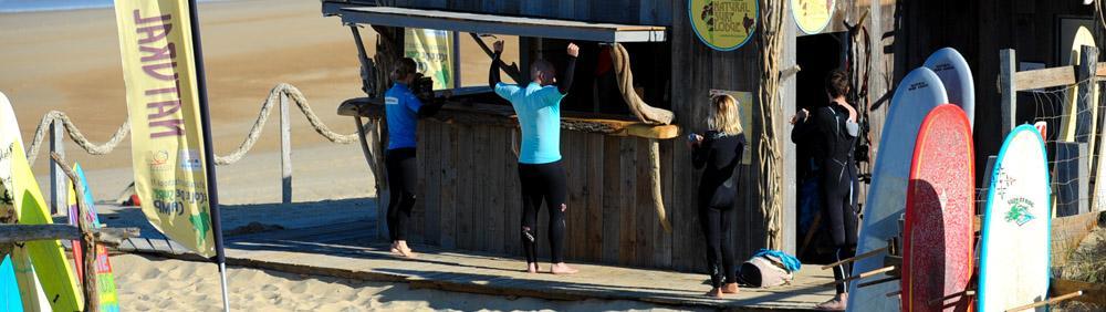 En bois entièrement démontable, un bel effort collectif permet de monter la cabane début mai. Lovée au flan de la dune en arrivant à droite sur la plage, elle propose en accès direct des cours de surf et des locations de planches (surf, body board, stand up…) à proximité de Biarritz. Conçue par Stéphane, elle s’insère parfaitement dans le décor naturel avec son ossature bois et ses éléments en bois flotté. Accueil des stagiaires pour les cours de surf ou la location de matériel, elle offre un confort simple et suffisant avec des vestiaires pour se changer et la terrasse face à l’océan pour se remettre d’une session ! L’équipe Natural reste toujours présente pour accueillir les stagiaires ou s’occuper des enfants entre deux cours. Le mardi soir en saison, la cabane prend une tournure festive pour l’organisation de notre barbecue hebdomadaire ouvert à tous les stagiaires : plancha, salades, verres de l’amitié, musique, coucher de soleil sont au programme de cette soirée qui permet à tout le monde de se retrouver pour parler de surf et des vacances !
