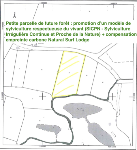 Le projet est d’intégrer à l’histoire du Natural Surf Lodge, une démarche nouvelle mais déterminée qui consiste à récupérer au fil du temps et des occasions, des coupes rases pour les replanter et compenser ainsi notre empreinte carbone professionnelle et personnelle. L’idée est de créer des passerelles entre le monde de l’entreprise, car le Natural Surf Lodge reste une entreprise économique, et la responsabilité écologique qui lui incombe ainsi qu’à nous-même en tant qu’individus.